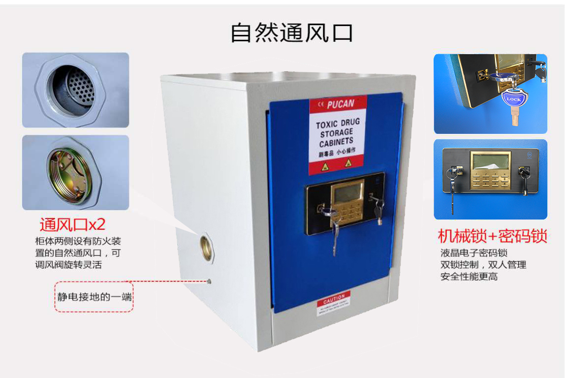 高性能的毒害品安全柜通过欧盟CE权威认证,达到OSHA标准(美国职业安全健康管理局),符合NFPA(美国国家消防协会)第30条规定的要求用于规范存储易燃易爆液体及危险化学品。